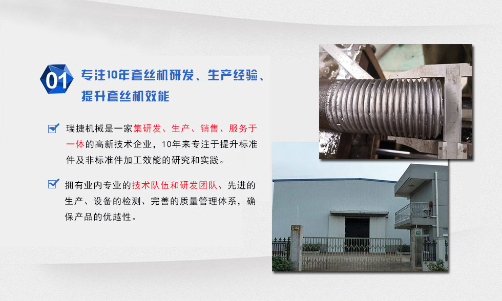 邢臺市瑞捷機械制造有限公司專業(yè)生產(chǎn)圓鋼套絲機,鋼管套絲機兩大系列,其特點主要展現(xiàn)為機頭的優(yōu)化改進,大幅度提高了加工螺紋絲頭的精確度和工作效率,有效解決了本行業(yè)在加工絲扣上端部易扭轉(zhuǎn)變形(絲扣加易擴口)、配件損耗高、加工效率低的技術(shù)難題。